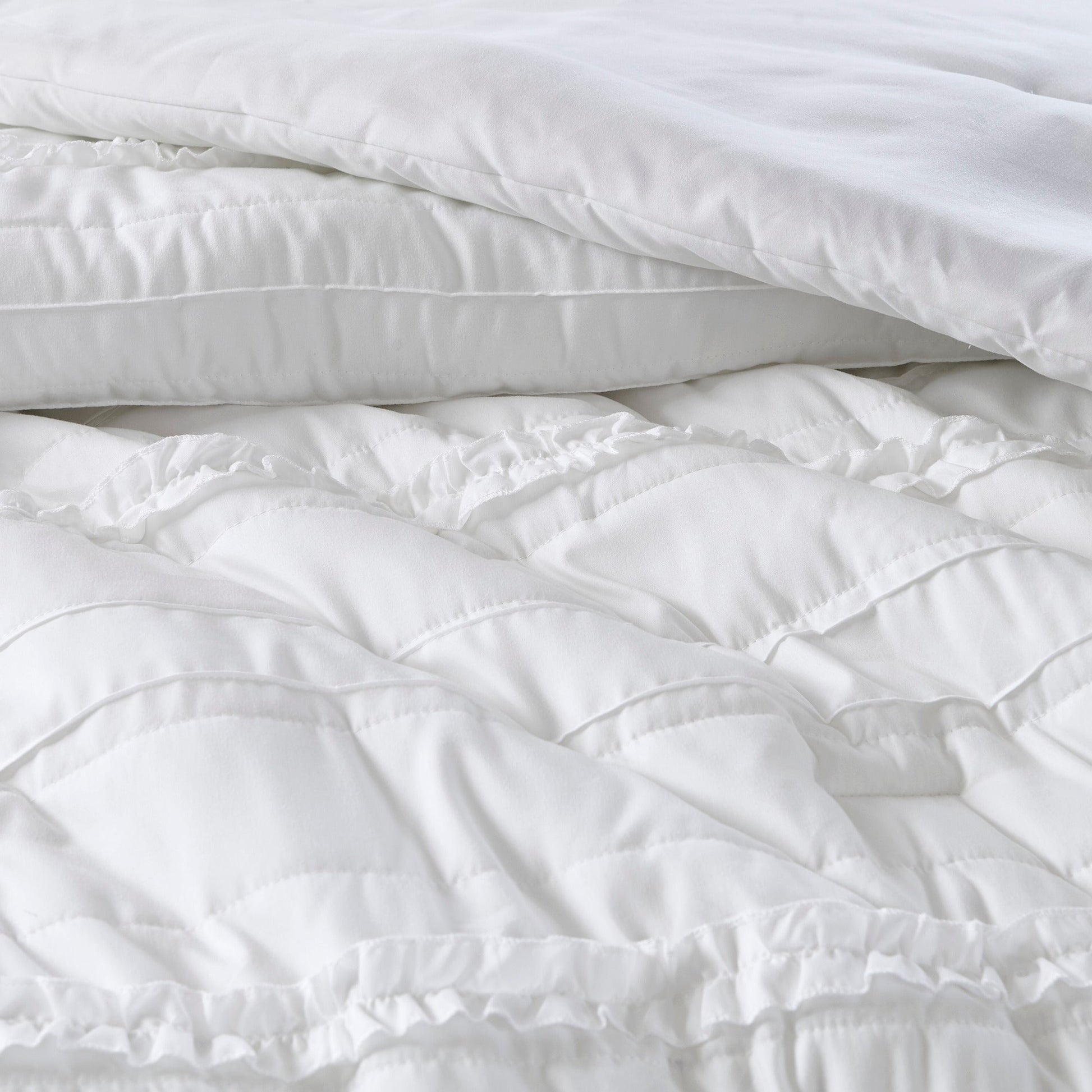 5 Piece Microfiber Ruffled Comforter Set White Queen