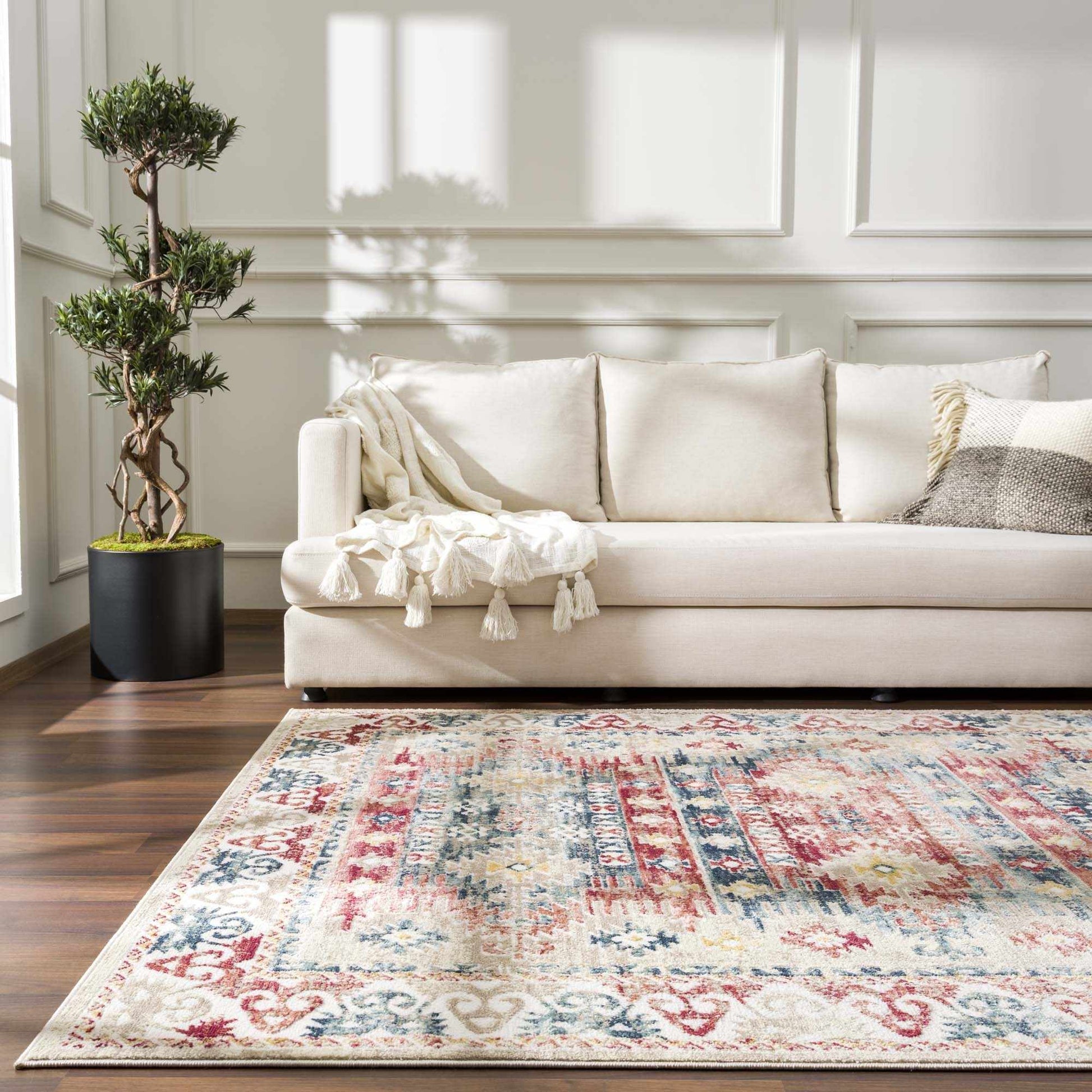 | About: The Bindi Blue Rose Area Rug showcases a distinctive bohemian style with its vibrant colors and unique patterns. Perfect for adding a pop of color and personality to any room, this rug brings charm and warmth to your living space. |